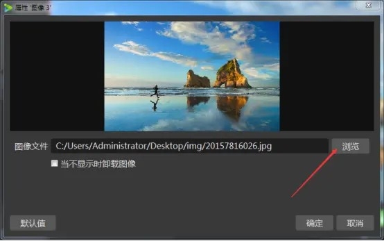 第四步、点击浏览按钮,从电脑中选择图片,选择好图片后,点击确定后即完成插入图片操作,所选图片将显示到场景中