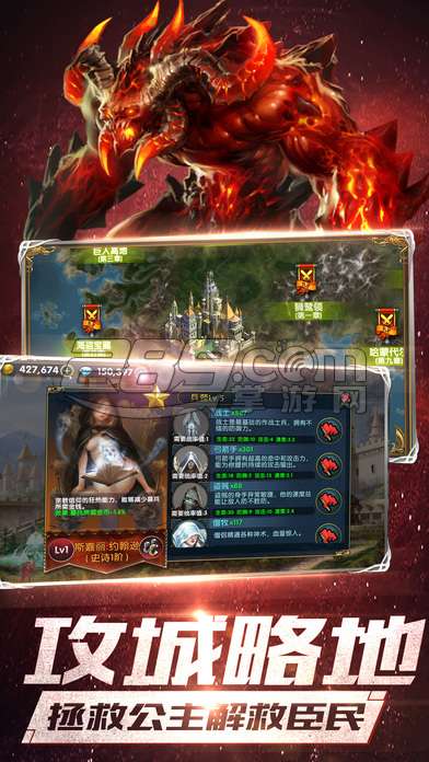 建造宏伟的城堡,参加自由开放的战斗。升级繁华城市,进阶强力英雄,打造史诗装备,探索一幅又一幅美轮美奂的山川河流,在探索中体验战争的乐趣。